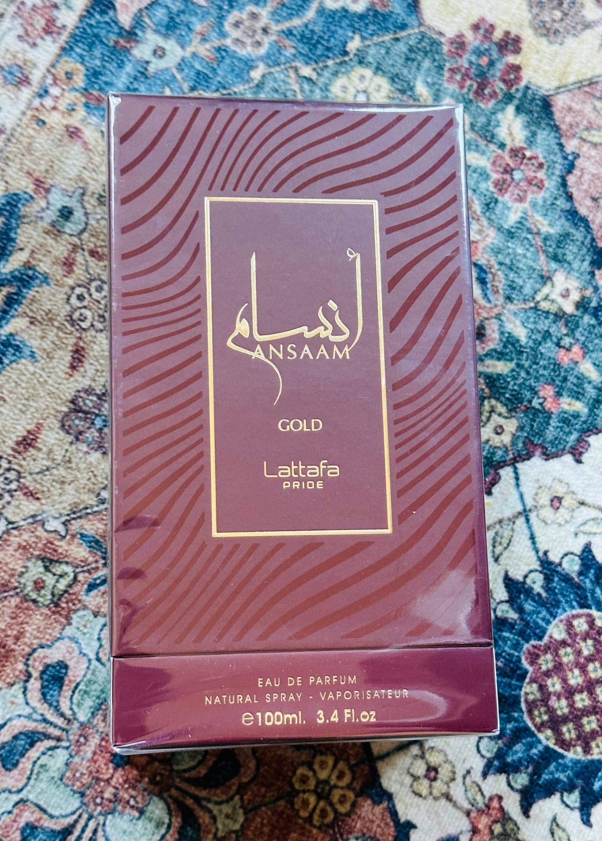 Ansaam Gold de Lattafa Perfumes es una fragancia de la familia olfativa Ámbar Floral para Mujeres. Esta fragrancia es nueva. Ansaam Gold se lanzó en 2022. Las Notas de Salida son mandarina y pera; las Notas de Corazón son notas dulces, jazmín y rosa; las Notas de Fondo son vainilla, almizcle y frambuesa.