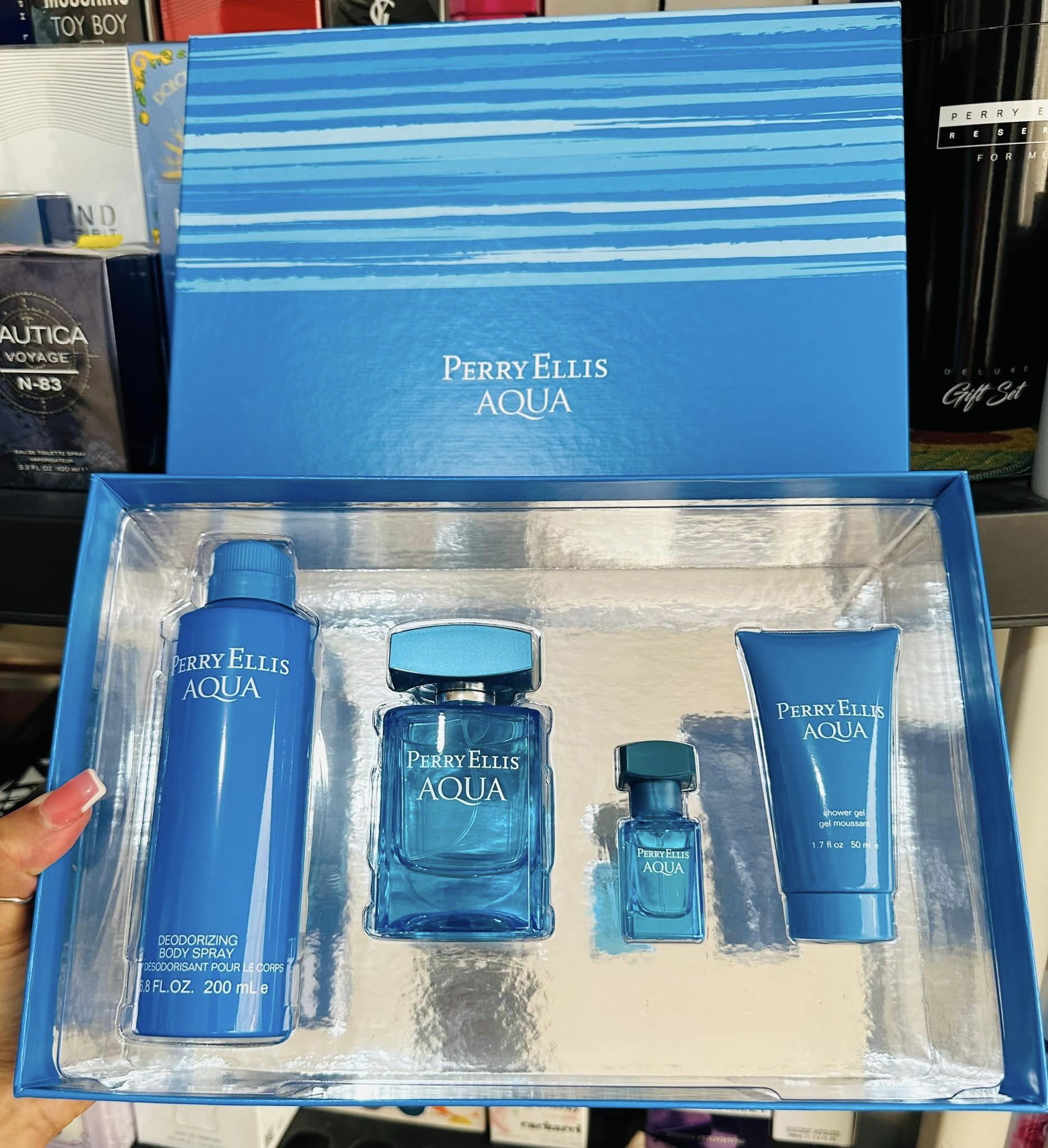 Aqua de Perry Ellis es una fragancia Aromática Acuática para hombres. Aqua se lanzó en 2012. Las Notas de Salida son lima y bergamota; las Notas de Corazón son agua de mar, lavanda y cilantro; las Notas de Fondo son notas amaderadas, almizcle y ámbar gris.