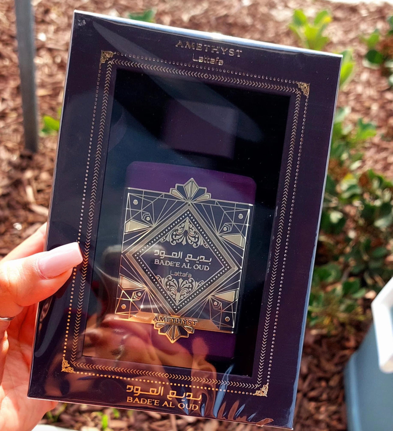 Bade'e Al Oud Amethyst de Lattafa Perfumes es una fragancia de la familia olfativa Ámbar Vainilla para Hombres y Mujeres. Bade'e Al Oud Amethyst se lanzó en 2021. Las Notas de Salida son pimienta rosa y bergamota; las Notas de Corazón son rosa turca, rosa de Bulgaria (rosa Damascena de Bulgaria) y jazmín; las Notas de Fondo son madera de oud, ámbar y vainilla.