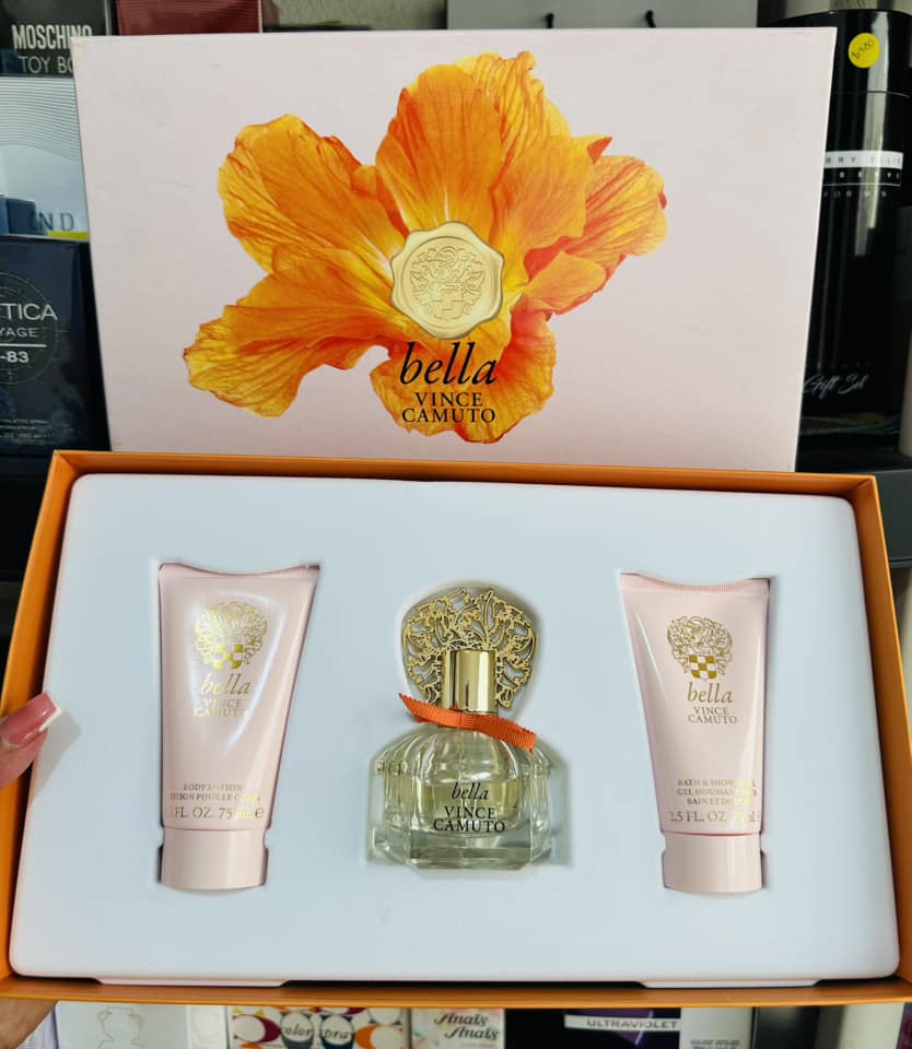Bella de Vince Camuto es una fragancia floral para mujer. Bella se lanzó en 2014. La Nota de Salida es Bergamota; las Notas de Corazón son flor de nectarina y jazmín; la nota de fondo es ámbar blanco.