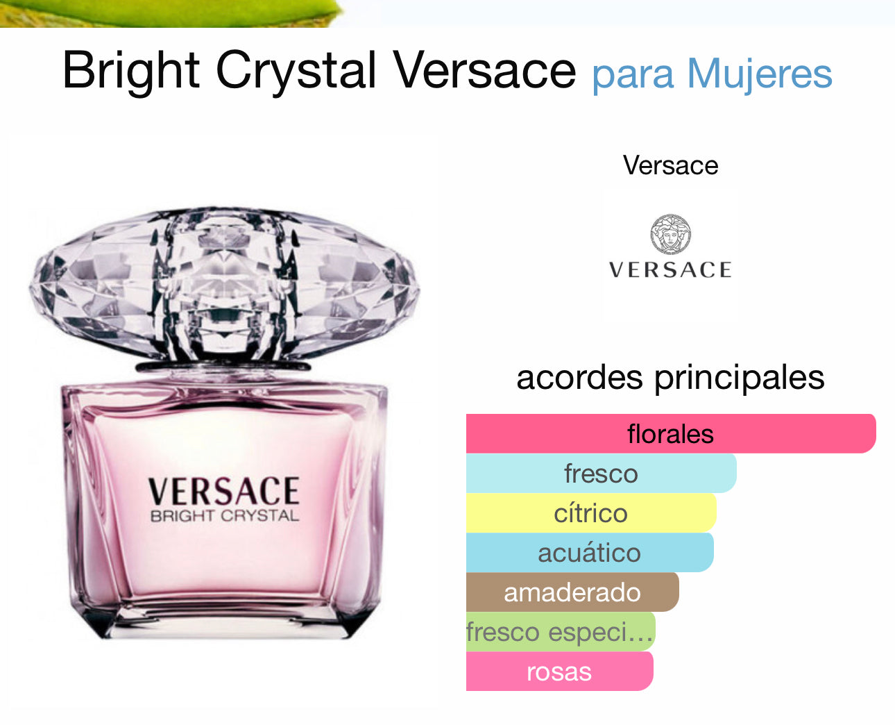 Bright Crystal de Versace es una fragancia de la familia olfativa Floral Frutal para Mujeres. Bright Crystal se lanzó en 2006. La Nariz detrás de esta fragrancia es Alberto Morillas. Las Notas de Salida son yuzu, granada y Hielo; las Notas de Corazón son peonía, flor de loto y magnolia; las Notas de Fondo son almizcle, caoba y ámbar.