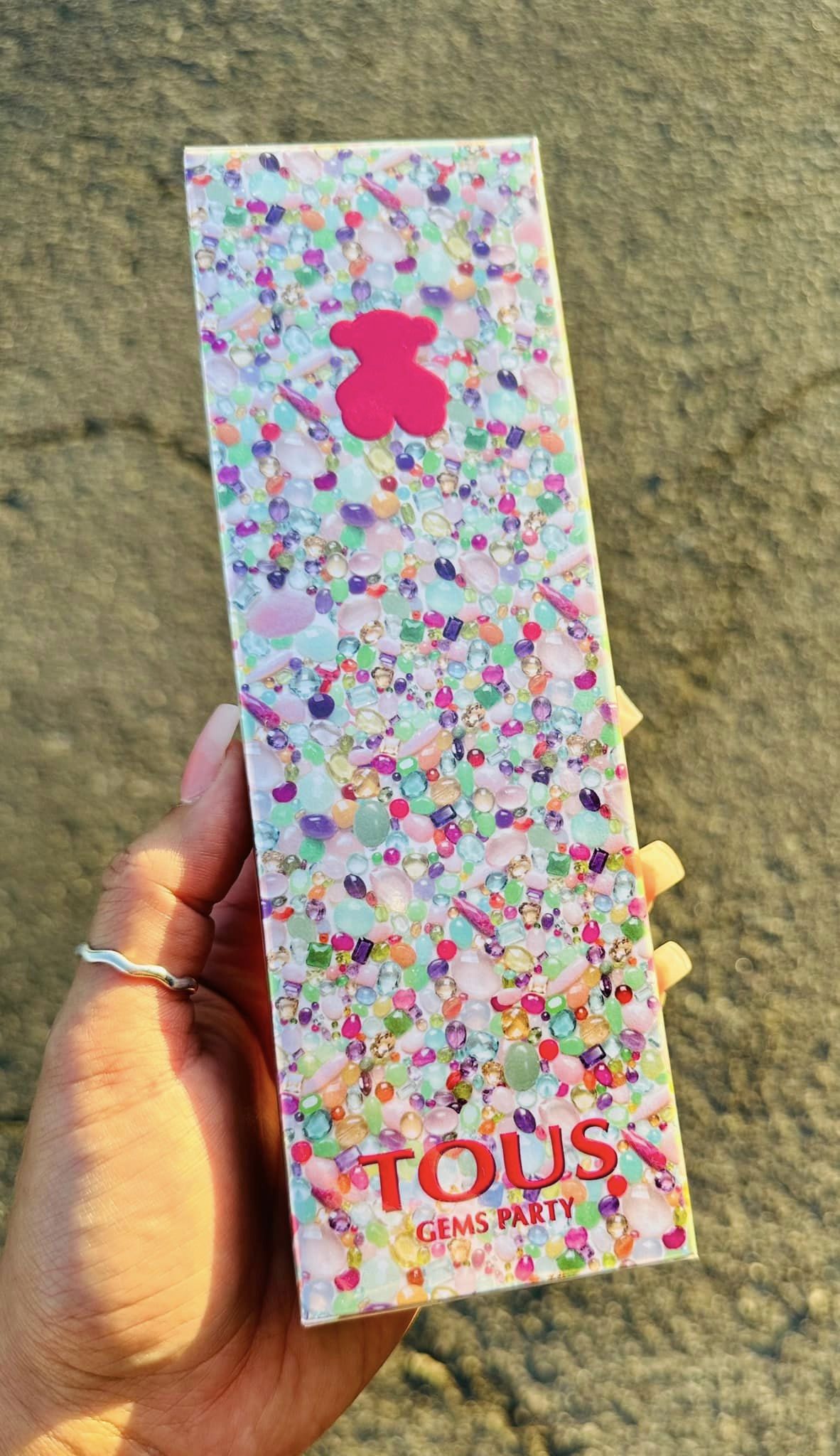 Gems Party de Tous es una fragancia Floral Frutal para mujer. Tous Gems Party se lanzó en 2021. La nariz detrás de esta fragancia es Corinne Cachen. Las Notas de Salida son papaya, piña, melocotón y limón; las Notas de Corazón son flor de mango, jazmín y peonía; las Notas de Fondo son vainilla, almizcle, ámbar y sándalo.