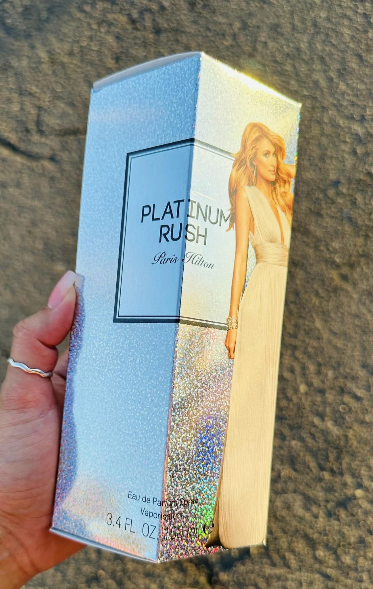 Platinum Rush de Paris Hilton es una fragancia para mujer. Platinum Rush se lanzó en 2018. La nariz detrás de esta fragancia es Frank Voelkl. Las Notas de Salida son pera, mango y manzana roja; las Notas de Corazón son notas acuosas, magnolia, acordes verdes, lirio de los valles (muguete) y notas florales; las Notas de Fondo son almizcle de cachemira, pachulí y ámbar.