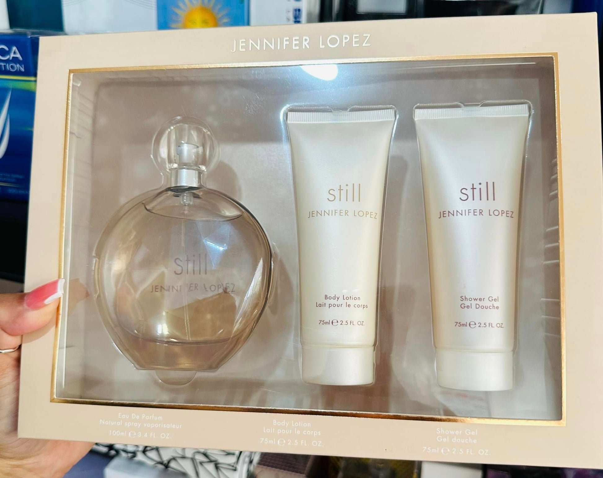 Still de Jennifer Lopez es una fragancia Floral para mujer. Still se lanzó en 2003. La nariz detrás de esta fragancia es Michel Girard. Las Notas de Salida son té Earl Grey, pimienta blanca, mandarina, manzana y arroz; las Notas de Corazón son jazmín, lirio de los valles (muguete), fresia, madreselva, flor de naranjo y rosa; las Notas de Fondo son pimienta, almizcle, sándalo, iris y ámbar.